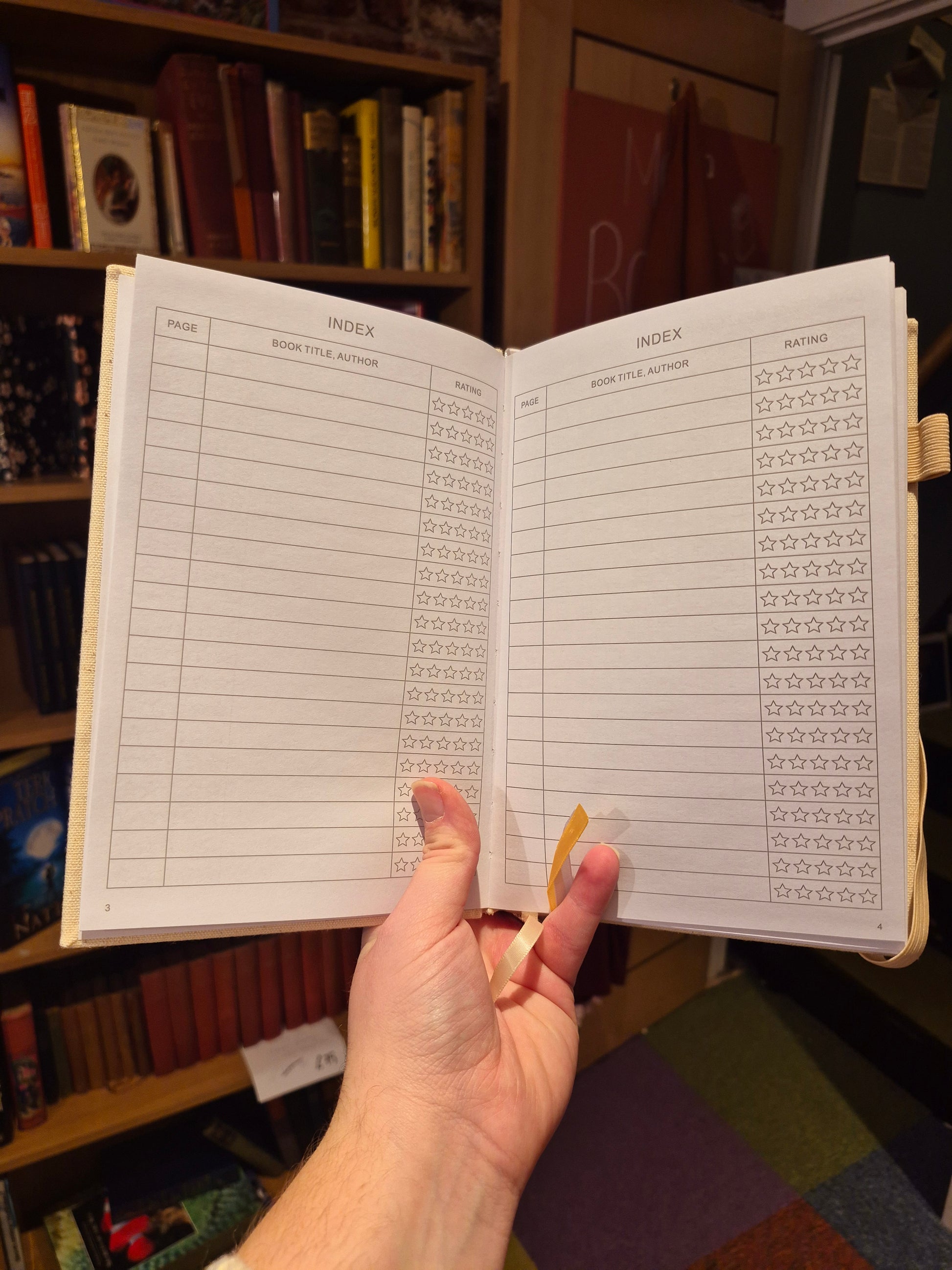 Inside, you'll find pages dedicated to rates and reviews, thoughts and quotes, daily and monthly trackers and more!
